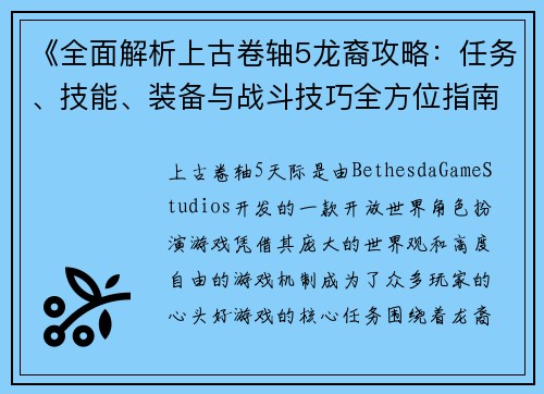 《全面解析上古卷轴5龙裔攻略:任务、技能、装备与战斗技巧全方位指南》