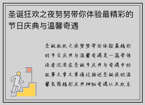 圣诞狂欢之夜努努带你体验最精彩的节日庆典与温馨奇遇